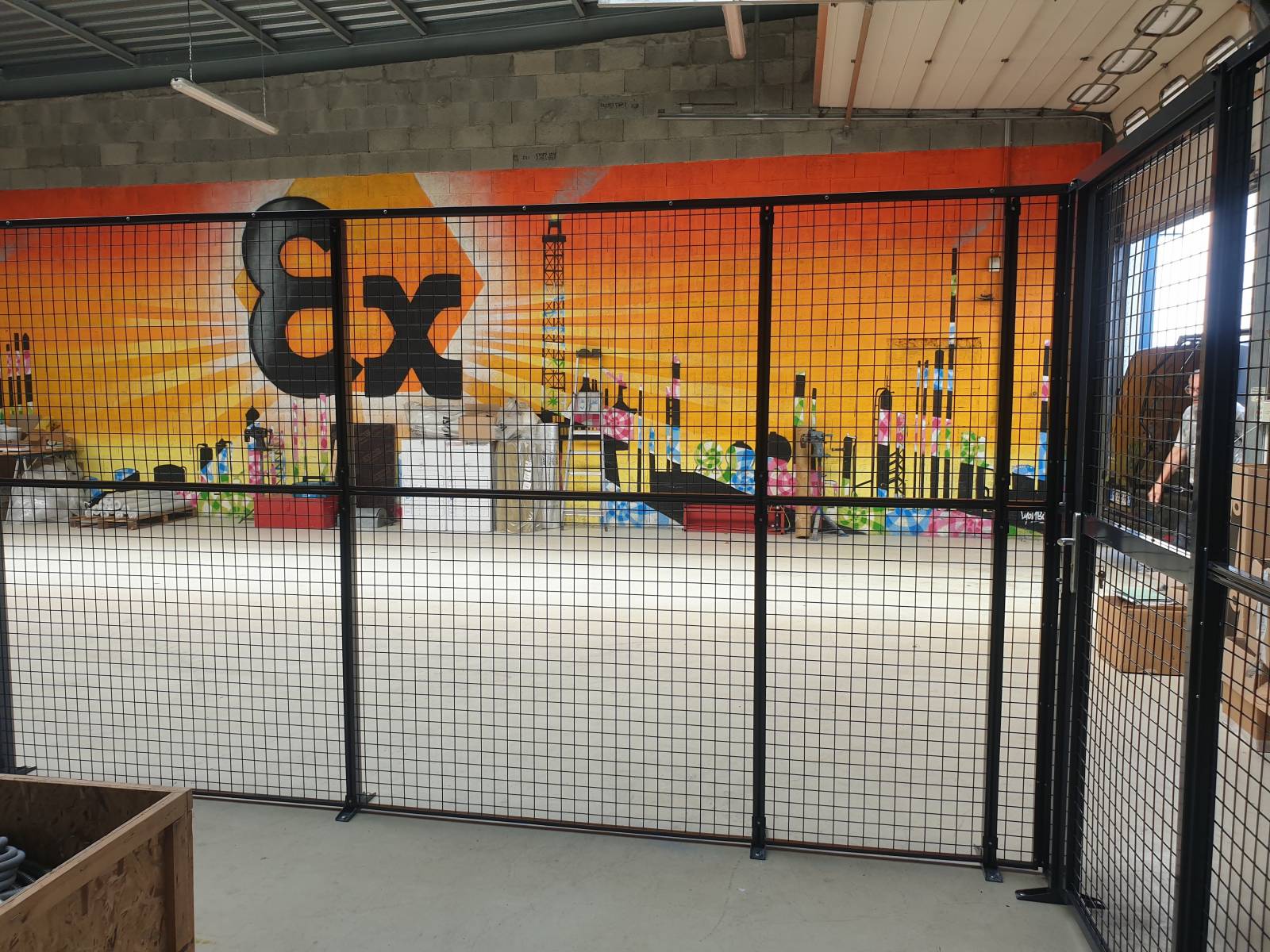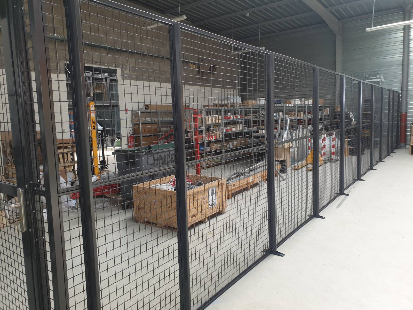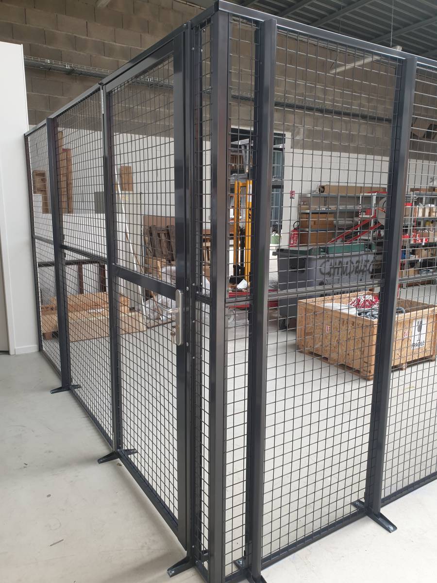 Optez pour une cloison grillagée industrielle avec porte battante pour la délimitation et la sécurisation de vos espaces.