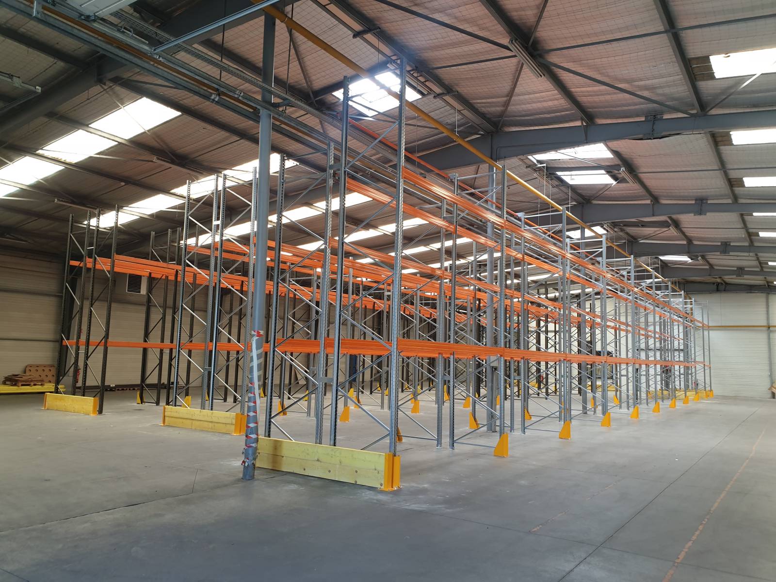 Nous avons réalisé la fourniture et la pose de rayonnages lourds avec protections de montants pour le stockage de palettes Europe dans un entrepôt logistique à Arnas, en utilisant le système palettier EPSIRACK. L'installation comprend plusieurs meubles double face ou simple face, conçus pour un stockage sécurisé et optimisé de charges palettisées lourdes.