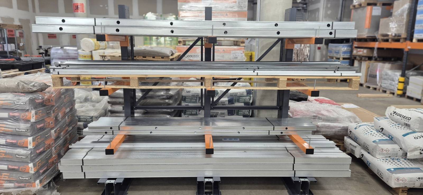 Rayonnages cantilevers mi-lourds pour le stockage de charges longues dans les commerces de matériaux de construction, les usines métallurgiques et les menuiseries à Villefranche-sur-Saône