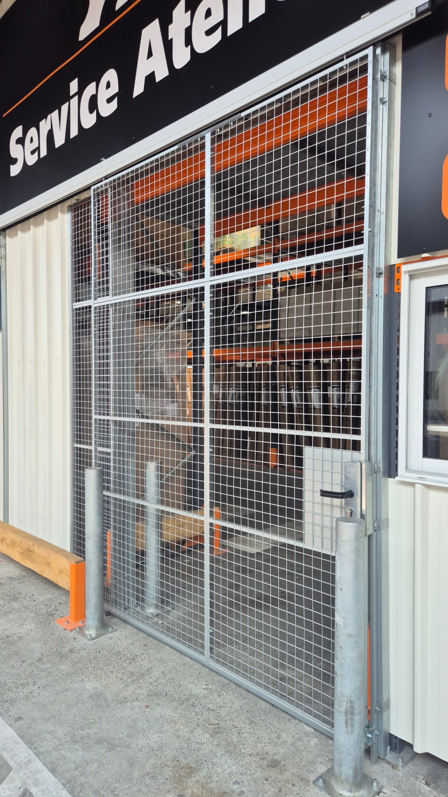 Installation d’une porte coulissante grillagée grande hauteur pour sécuriser l’accès à un atelier de découpe dans une grande surface de bricolage à Lyon. Adaptée aux environnements industriels, cette solution combine robustesse, modularité et options de verrouillage avancées.